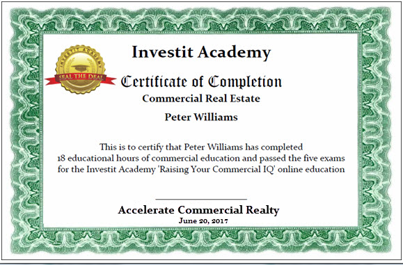 The Raising Your Commercial IQ provides comprehensive online commercial real estate education and accreditation using the Investit Academy Learning Management System as the online delivery platform.